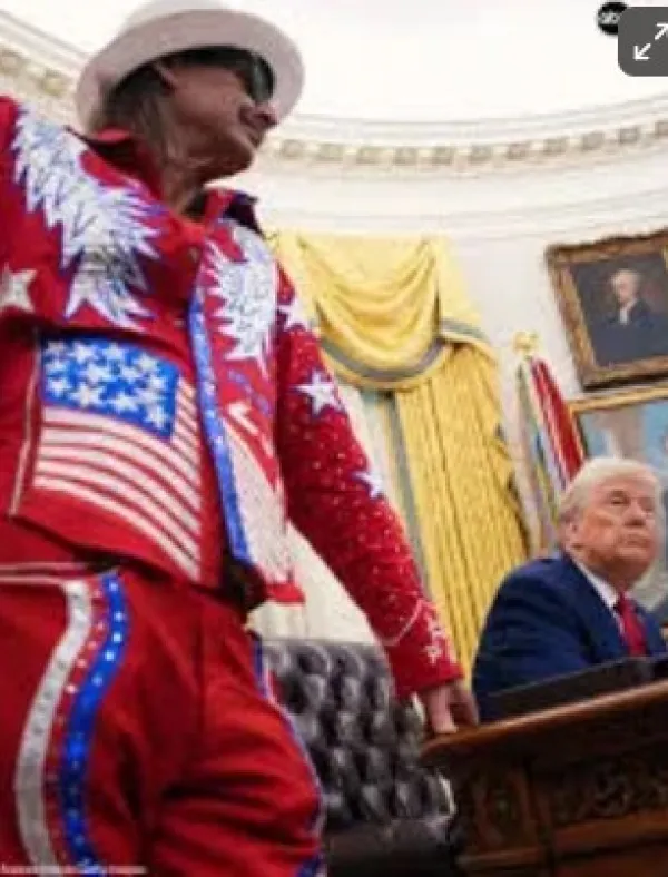And in the Oval Office, which Kid Rock must have confused with Waffle House, and with the way Trump decorates, who can blame him?