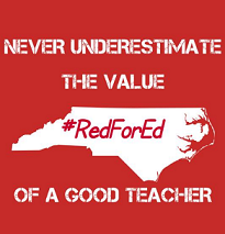 Red background and white letters that say Never Underestimate the value of a good teacher and the RedforEd logo