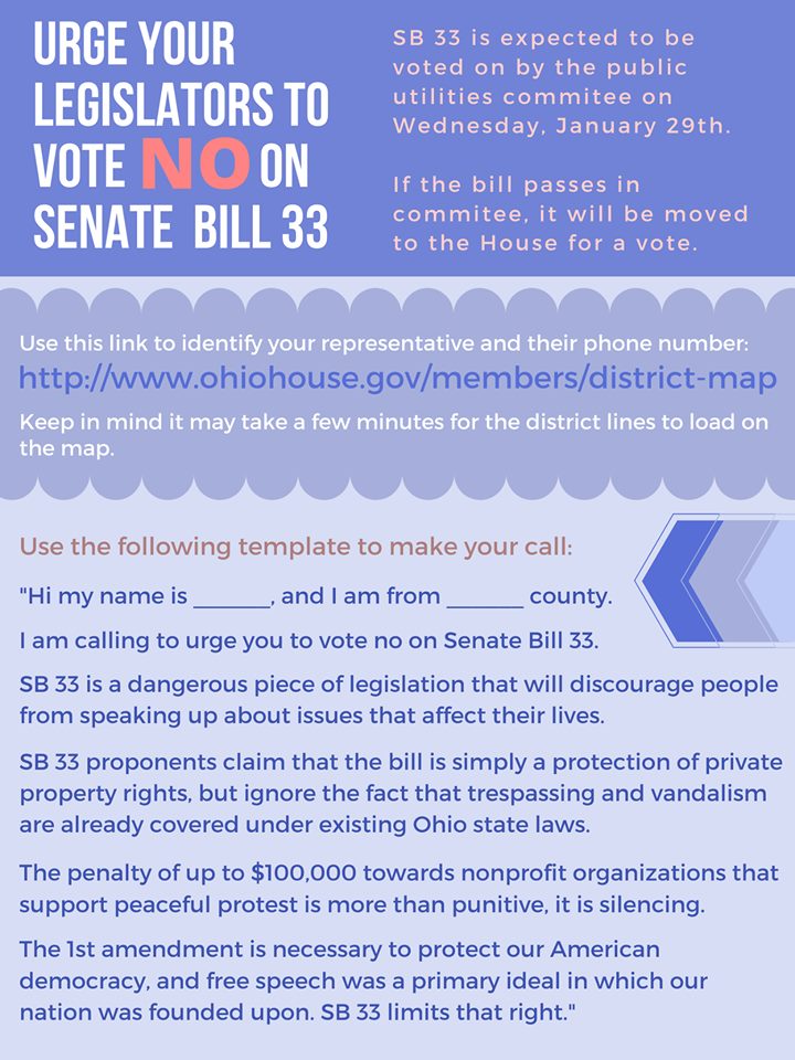 PLEASE, Ohioans, contact your legislators before Wednesday, February 5th, and let them know that this bill will be an infringement of the rights of every citizen in Ohio to protest and publicly assemble, most specifically against oil and gas infrastructure harms.