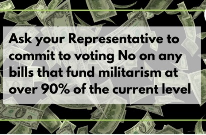 Meanwhile, a reduction is favored by the majority of the people who pay for all the wars for "democracy." And we shouldn't be confining our requests of Congress Members to signing letters or sponsoring hopelessly good bills or joining well-named caucuses. We should be insisting that they publicly and emphatically commit to voting No on any bill that funds military spending at more than 90% of the past year's level.