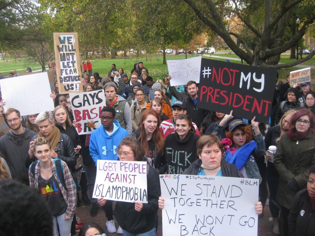 Over 200 Ohio State University students and faculty held a protest against President-elect Donald Trump on November 11.