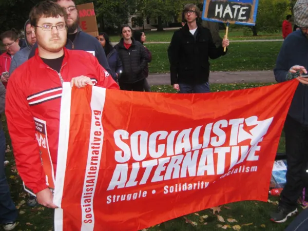 “A sexist, racist bigot will be our President,” said Coco Smyth of the International Socialist Organization. “Our communities are under attack, and yet the Democratic Party, which until a couple of days ago was calling him a fascist, a racist, and a sexist, is now saying, ‘Let’s unify behind Trump. Let’s work with Trump.’”