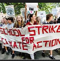 Young people marching outside with a banner reading School Strike for Climate Action