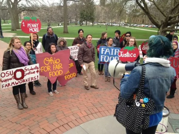 Ohio State students have been a vital group supporting the CIW, showing up in increasing numbers at each action. Students have recently started taking matters into their own hands by applying pressure directed at the Wendy’s located on campus.