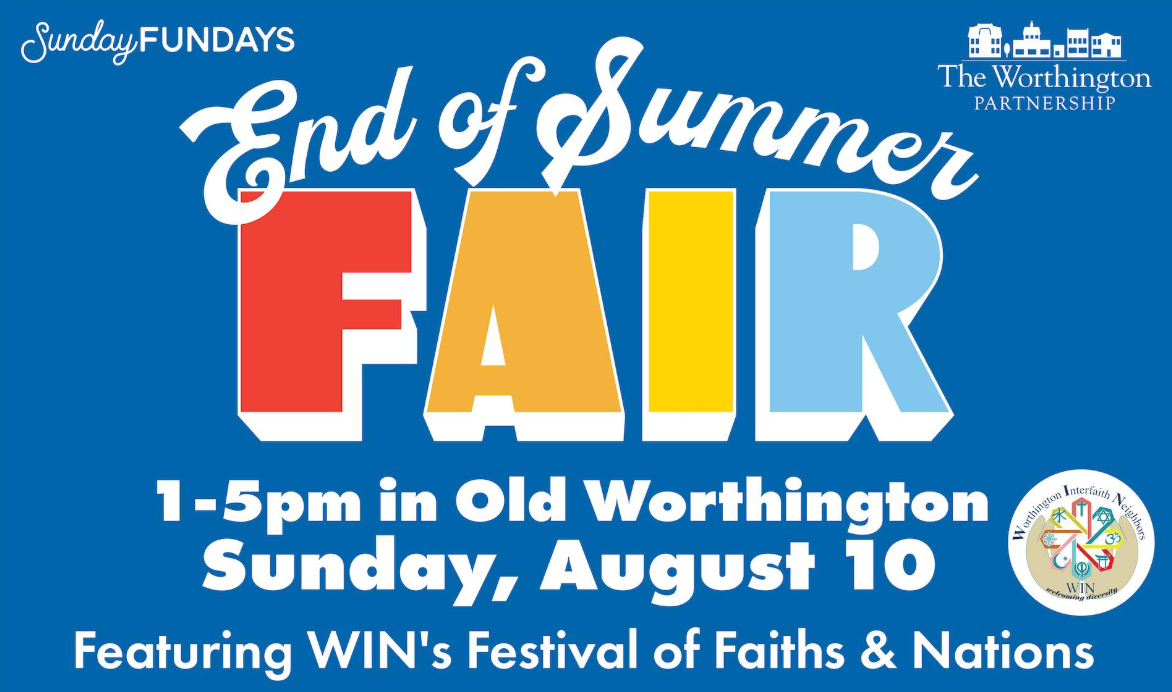 Join us for our community’s favorite celebration of summer and save the date for Sunday, August 10 for our End of Summer Fair! This year, we’re joining forces with our friends at Worthington Interfaith Neighbors [WIN] to include their annual Festival of Faiths and Nations event!