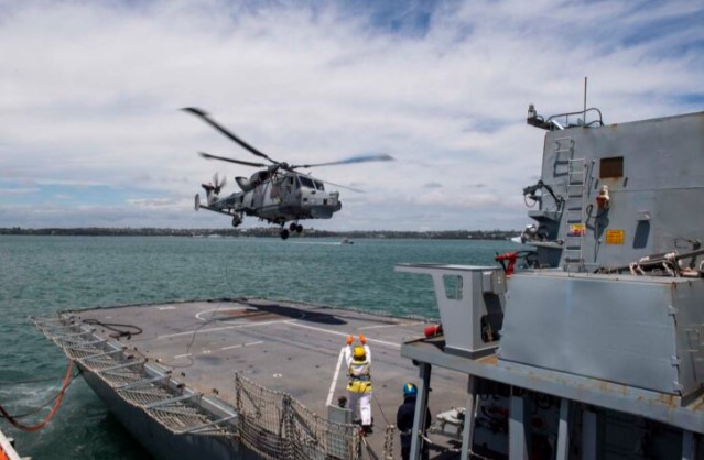 Helicoper landing on naval ship