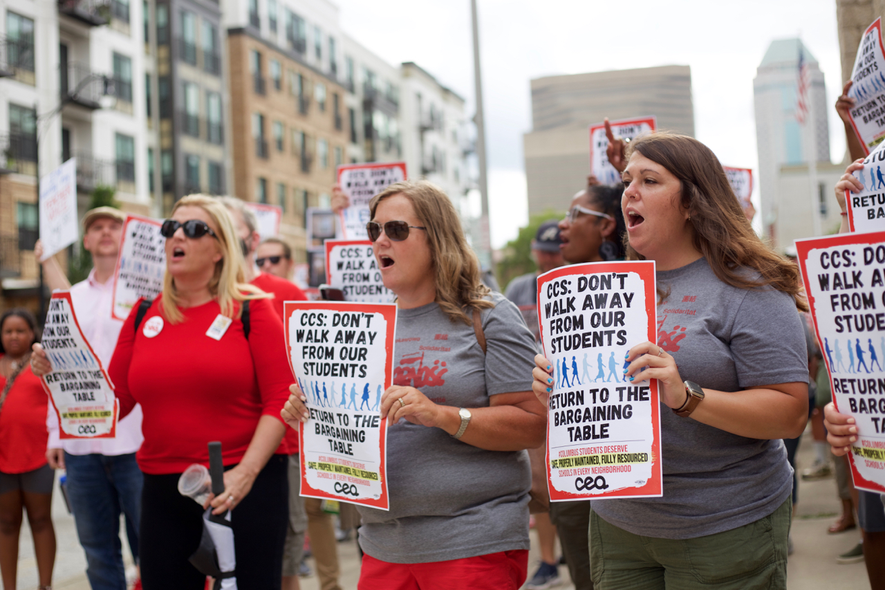 Members of the Columbus Education Association (CEA), a union representing more than 4,500 teachers and staff members of Columbus City Schools, have mounted a series of demonstrations this year as tensions have escalated between the union, the school district's administration, and the city government. With time running out before the start of a new academic school year in Columbus and negotiations between the union's membership and school officials stalled, members of the union have called for a vote to recommend a strike.. That recommendation could come as soon as August 4.