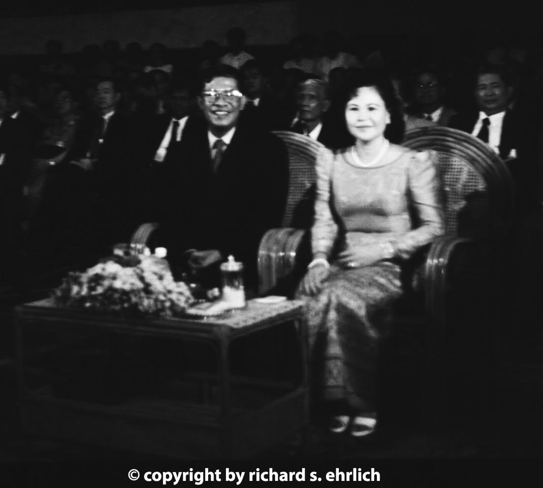 Hun Sen, seen here in 1998 with his wife, was one of Pol Pot's anti-U.S. Khmer Rouge regiment commanders during the 1970s and became Cambodia's authoritarian prime minister for 38 years.Photo copyright Richard S. Ehrlich