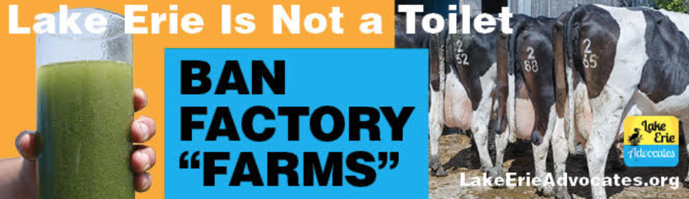 Those 25,000,000 confined animals in our watershed excrete an amount of Phosphorus equivalent to the combined human populations of Ohio, Indiana, Chicago and Atlanta taking a dump on the fields draining into Lake Erie, with absolutely no treatment. Small wonder the lake turns toxic every summer when warm, shallow water combines with tons of Phosphorus, E. coli bacteria, Nitrogen, feces, urine, antibiotics, blood and lord knows what else.