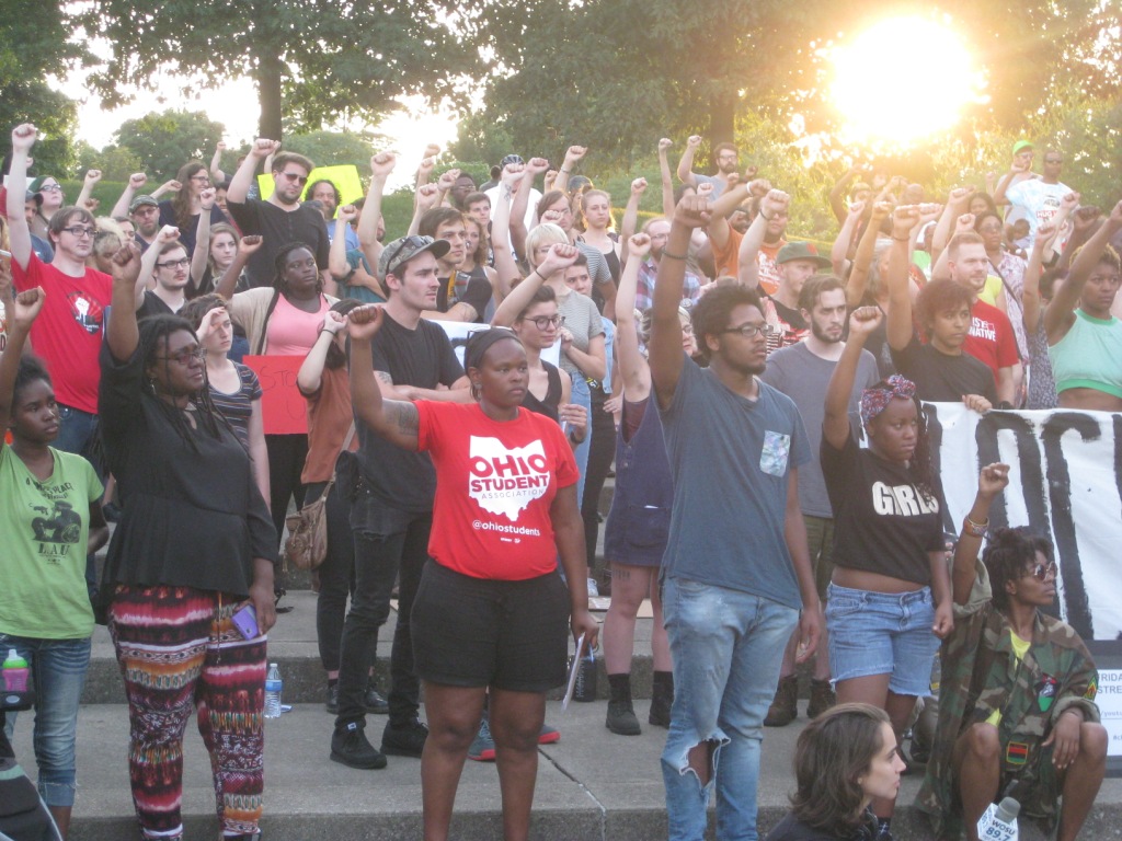 “In the wake of the national outcry over the police killings of Alton Sterling and Philando Castile, we’ve seen black folks and allies put their bodies on the line to fight for a world where black lives matter,” said Tynan Krakoff, a lead organizer with the Columbus chapter of Showing Up for Racial Justice (SURJ), a group of white people organizing white people to fight against racial injustice.
