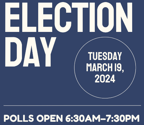 Tuesday,March 19 Polls are open 6:30am–7:30pm.