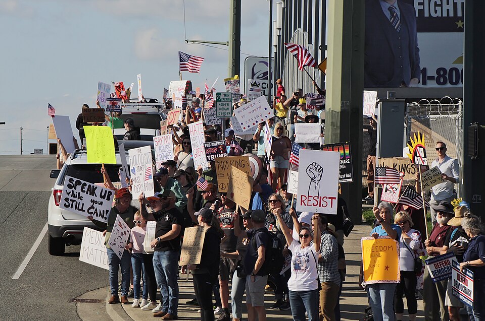 Consideramos que la primera protesta No Reyes convocó a más de dos mil eventos, con una afluencia que rebasó los cien mil en las ciudades de Boston, Chicago, Los Ángeles y San Francisco; más de cincuenta mil en medio docena de ciudades y por lo menos diez mil en cada una de 45 otras. Desde aquel parteaguas, la participación ha caído en los días de protesta nacional, por importantes que fueron el aniversario luctuoso de John Lewis, el Día del Trabajo, y los eventos de energía renovable en Día del Sol. La cantidad de eventos también retrocede: mil seiscientos en el aniversario de John Lewis y cientos en los Días del Trabajo y del Sol. Su alcance ha sido poderoso, permeando a comunidades en todo el país. Pero la asistencia se merma: las estadísticas disponibles reportaron diez mil en Chicago el Día del Trabajo, cinco mil en Austin que denunciaba la manipulación de distritos electorales en Texas.