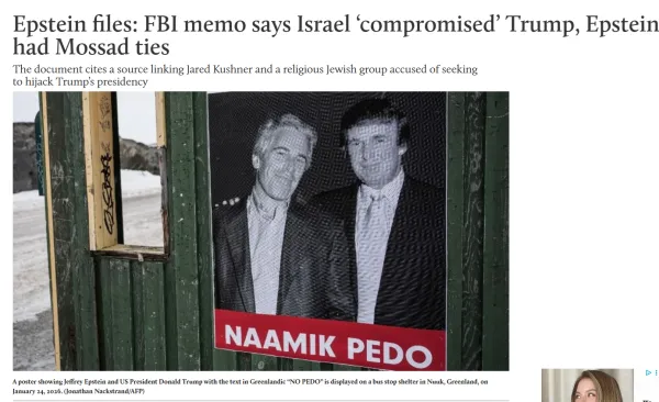 Fresh claims from the latest Jeffrey Epstein-related documents reveal an FBI report quoting a ‘credible’ confidential human source (CHS). The source alleges that US President Donald Trump has been "compromised by Israel." The sourced added that Jared Kushner was running the show at the White House during Trump's first term in office as President. That's the ugly truth why Trump could not stop the mass killing in Gaza. Israel has him by the throat!