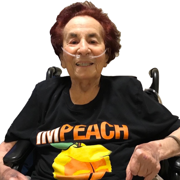 A bad look? Has Hegseth ever looked at our Commander-in-Chief, the bloviating porcine bigot in a red tie? Mom could have taken General Bone Spurs to the mat. (I am strictly non-partisan, but Mom wasn’t. Here’s a photo of her, two days before she passed away at 97, smiling in her “Impeach Trump” T-shirt.)