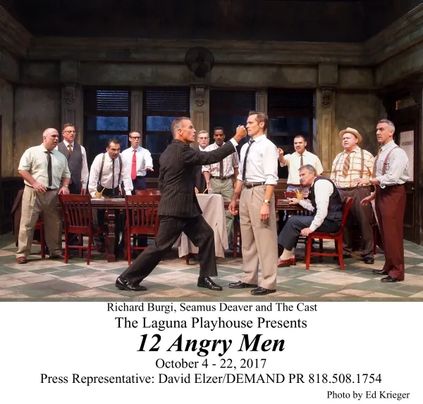 Twelve Angry Men is playing Wednesdays through Saturdays at 7:30 p.m., plus 2:00 p.m. on Saturdays and Sundays at 1:00 p.m. through Oct. 22, at the Laguna Playhouse, 606 Laguna Canyon Road, Laguna Beach, CA 92651. For more info: (949)497-2787; www.LagunaPlayhouse.com.