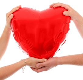Two hands holding a big red heart