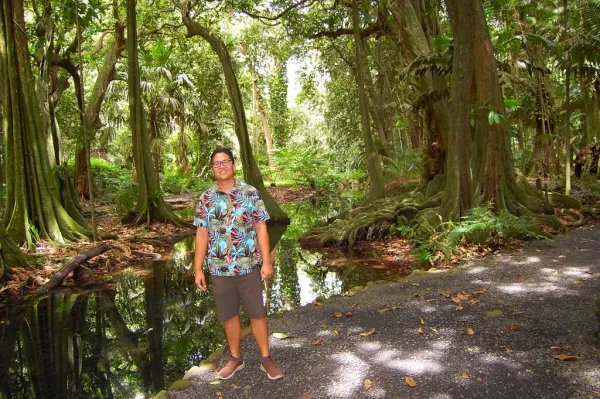 We drive a few miles south to the Harrison Smith Botanical Garden in the district of Teva I Uta, where the eponymous American botanist transplanted flora from Asia, Africa and the Americas. There are more water lily ponds here filled with white and purplish Nymphaeaceae, and the transcendent spellbinding scenery seems at times like a tropical version of Claude Monet’s garden at Giverny, France or a Louisiana bayou. Wending one’s way on foot through Smith’s inspired Botanical Garden, past giant bamboo and mangosteen trees is a relaxing experience that revives the soul. The banyan and mape (chestnut) trees have sprawling roots and branches. The grounds perched opposite the now shuttered Musee Gauguin and beside the ocean also include Tahiti’s oldest living animal – a Galapagos tortoise.