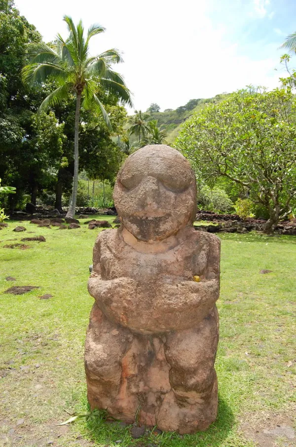 This reconstructed Polynesian temple complex, devoted to the ancient nature worshipping religion, is set in a wide emerald expanse full of plants and trees, beside a rushing river in the valley of Tefa’aiti. There are large carved stone and wooden tiki god figures, raised rocky walls, altars and platforms up to three-stories high, plus exhibit boards explaining the significance of the pre-Christian archaeological site where traditional ceremonies are reenacted every July during the annual Heiva celebrations that roughly coincide with French Bastille Day observances.