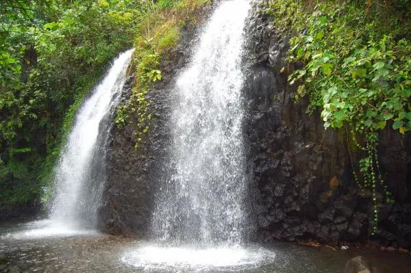 Returning to Tahiti Nui and driving up its northeastern coast, Mana’s expedition discloses even more of the island’s Polynesian pulchritude. Off the main road of Faaone are the twin 30-plus foot high Vaihi waterfalls, which plummet into a pool lush with luxuriant greenery.