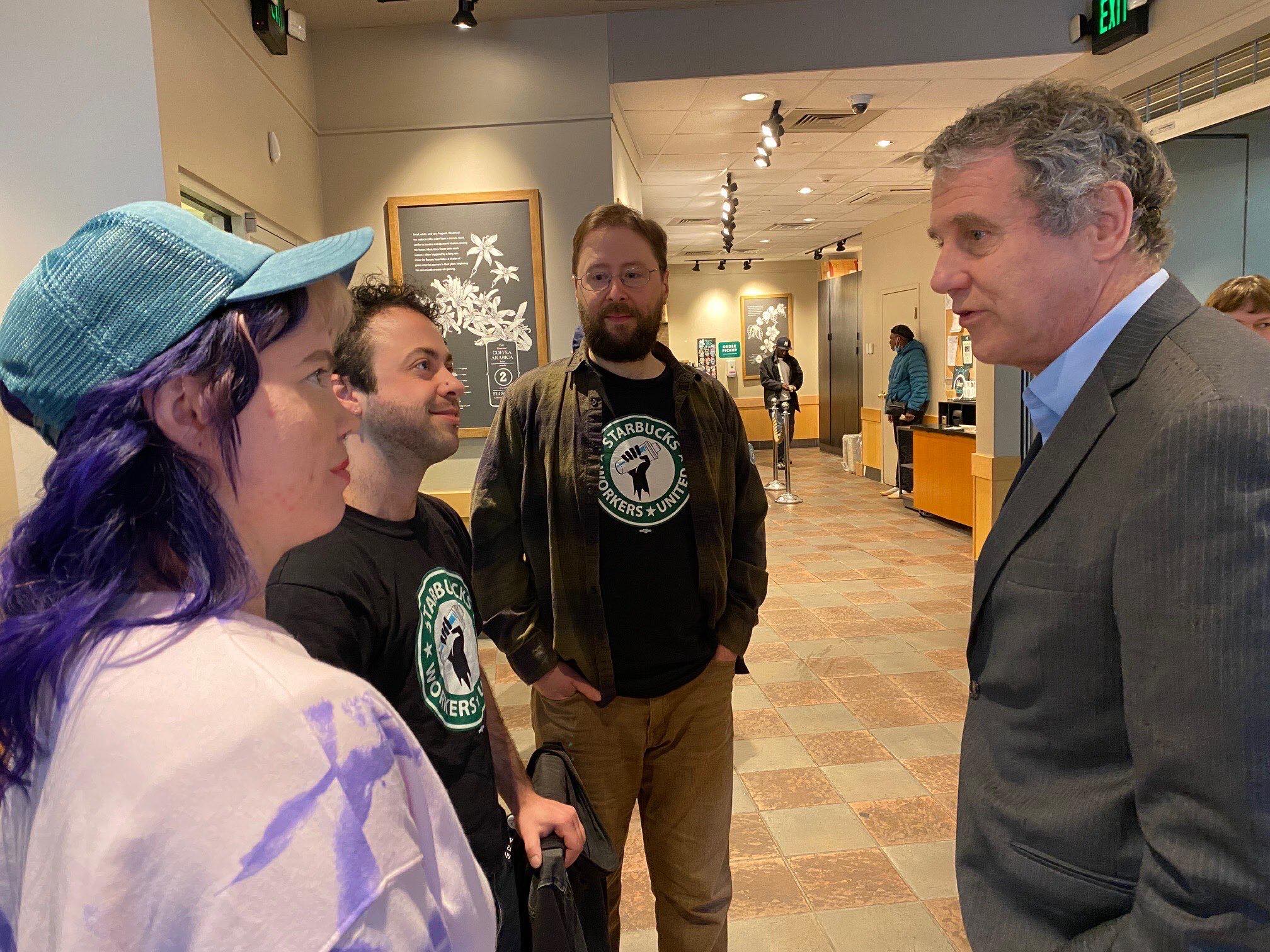 Ohio Democrat and US Senator Sherrod Brown recently paid a visit to the downtown Starbucks that will soon vote to unionize.