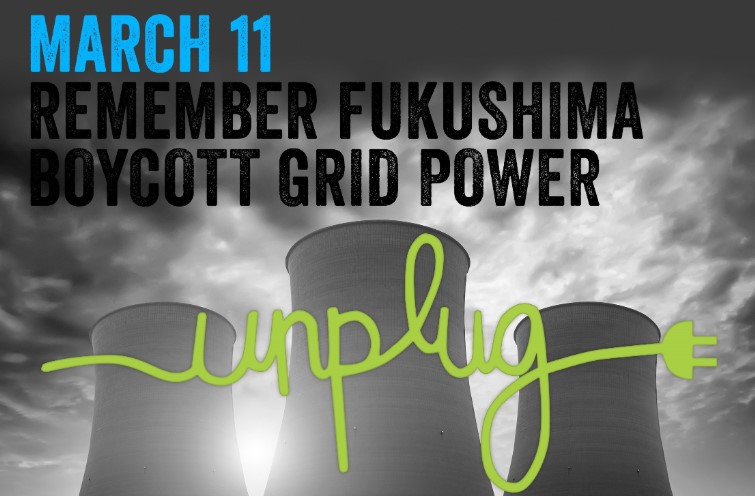 It's time for our annual boycott of grid electricity as a protest against nuclear power and to remember the victims of the Fukushima meltdowns, past, present, and future. March 11 is the 14th anniversary of the nuclear disaster that contaminated so much of Japan, rendering parts uninhabitable forever. That is a fate that could await any community near a nuclear plant anywhere in the world.