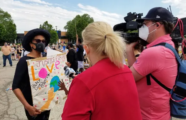The march began Wednesday, June 3 with a rally at 12:00 noon at the north end of the Kingsdale Shopping Center in Upper Arlington, a six-minute walk north of where I live. At about 12:40 p.m., following the rally [that had included several speakers], the group of thousands marched, on the streets, through several neighborhoods of Upper Arlington [including a section of the historic "Old Arlington" neighborhood south of Lane Ave.] and eventually returned to the Kingsdale Shopping Center.