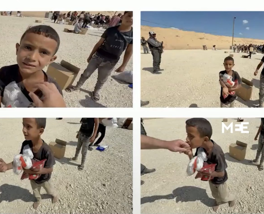 Amir walked 12 km., barefoot, to get food. He kissed the hand of an American soldier, thanking him for a bag of rice. Israeli soldier shot him, right in front of the American soldier. Aug. 4, 2025, tweet by The Resonance