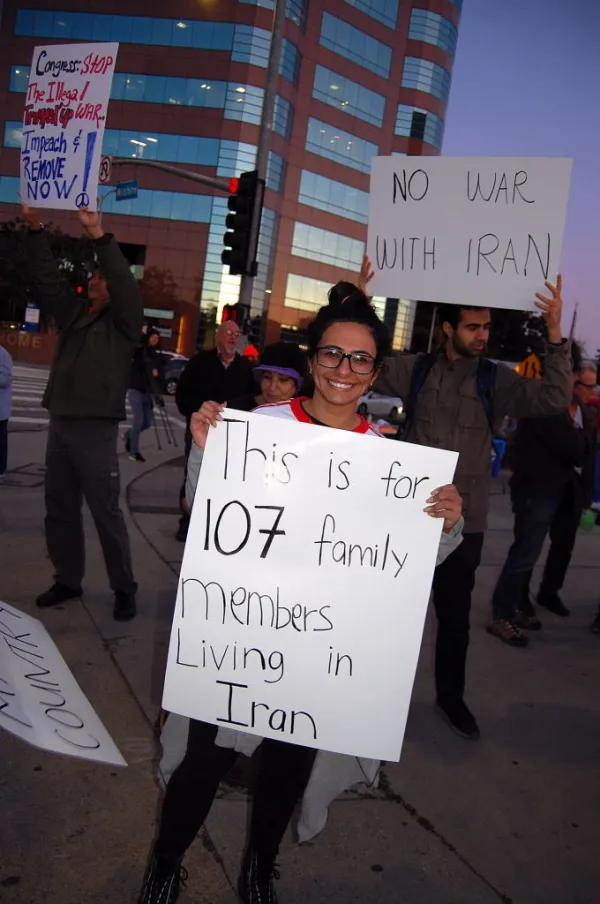 A young woman, perhaps still a teenager, identifying herself as “Kurdish-American,” expressed the sentiments of many people from Westwood to Kurdistan and beyond, proclaiming: “FUCK Donald Trump! FUCK this administration!” reviled by so many here and abroad as it ratchets up war tensions in the midst of an impeachment imbroglio. The protester also held a “Fuck Trump!” sign.