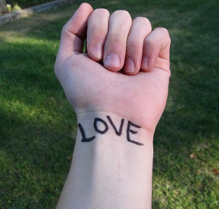 Love tattooed on a wrist