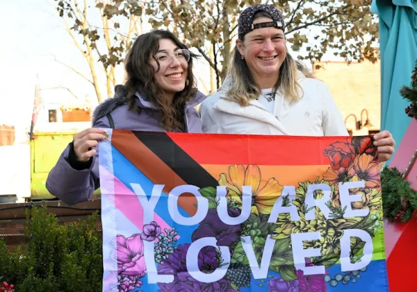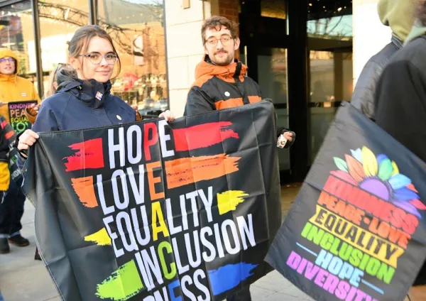 Dozens of people from across the city gathered in the Columbus Short North district on a cold December afternoon to show the world that “Hate has no home here”.