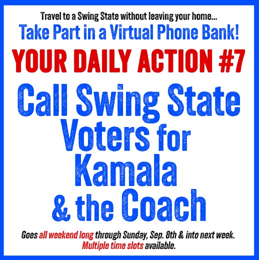 Beginning today and running all weekend long (and throughout September), the Democratic Party is organizing virtual phone banks for the Harris-Walz campaign, and for other Democrats down the ballot.