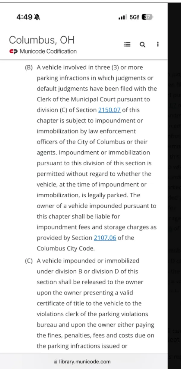 As an attorney who has been employed by the City of Columbus Attorney’s office for seven years and who earns $137,000 per year, she certainly had the financial means to pay her tickets. She earned her most recent ticket on February 23, 2025, for a “failure to register” her vehicle. Yet while under oath, Ms. Ross denied whether or not her registration was up to date. And do you mean to tell me that City Attorney Zach Klein and his office was not privy to Ms. Ross’s driving record? Traffic violations fall under the purview of Attorney Zach Klein’s office. And why wasn’t Tiara Ross’s vehicle ever towed and impounded (See attached city code)?