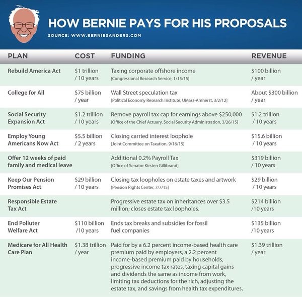 For those who can get past sound bites, Sanders' proposals are good, and the taxes all needed for the sake of equitable sharing of wealth and power. But cutting the oceans of cash going to the armed forces is also needed for the purpose of slowing down the military industrial complex and its penchant for creating wars.