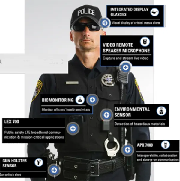 This cellular potential also turns the officer into a WiFi hotspot. Motorola's product line includes a police car that is its own WiFi hotspot and also has eight cameras built into the vehicle facing in every direction, constantly recording. The amount of data that can be hoovered up during a single patrol shift is amazing. The processing that happens to that data afterwords is frightening.
