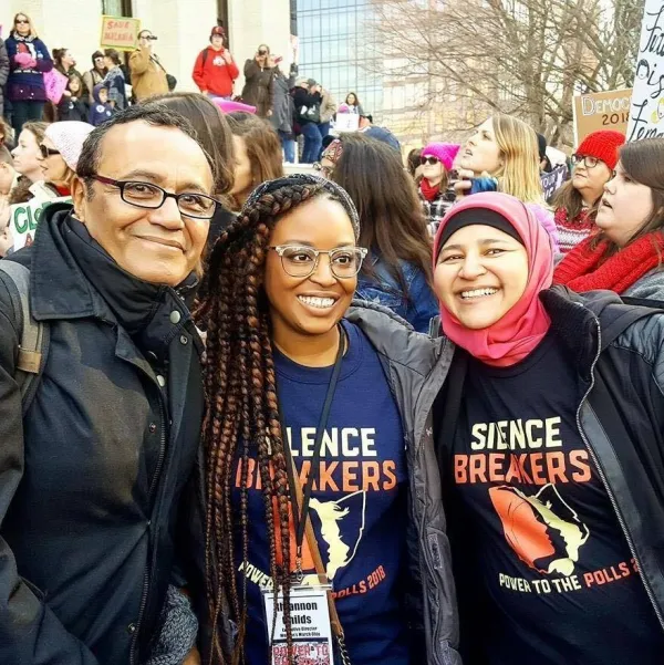 Rubén Castilla Herrera, Rhiannon Childs, and Zerqa Abid at the 2018 Women's March in Columbus.