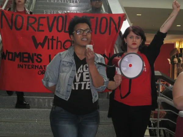 “I’m a Marxist feminist, like Angela Davis and Rosa Luxemburg,” said Emily Shaw of the International Socialist Organization.