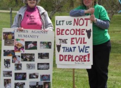 Joy First, PhD, is a grandmother and peace activist who focuses on nonviolent civil resistance as she speaks out against the crimes of the U.S. government. She has been arrested many times in the struggle for peace She is a member of the National Campaign for Nonviolent Resistance, Wisconsin Coalition to Ground the Drones and End the Wars, Wisconsin Network for Peace and Justice, and Madison Pledge of Resistance.