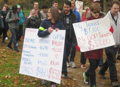 Graduate students march on OSU Oval to #SaveGradEd from GOP tax bill